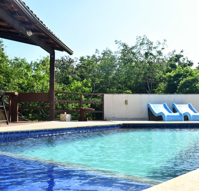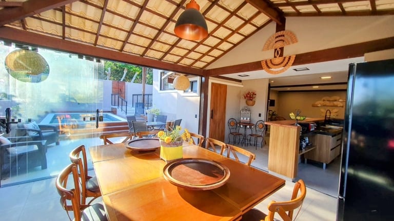 • Casa proncipal: 2 SUITES - 3 BANHOS - SALA - COZINHA - PISCINA - CHURRASQUEIRA • LOFT: 1 SUÍTE - COZINHA.
